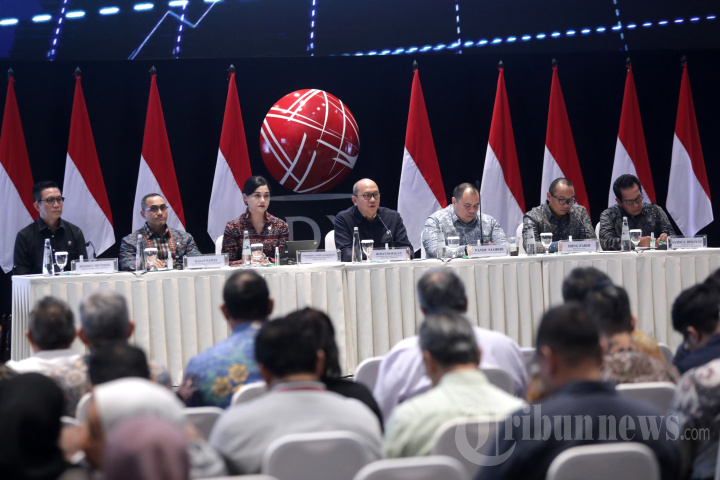 PASAR MODAL - Ceo Badan Pengelola Investasi Danantara Indonesia Rosan Roeslani (tengah) bersama Pejabat Sementara Ketua Dewan Komisioner OJK Frederica Widyasari Dewi (ketiga kiri), Pejabat Sementara Kepala Eksekutif Pengawas Pasar Modal, Keuangan Derivatif, dan Bursa Karbon OJK Hasan Fawzi (kedua kiri), Direktur Bursa Efek Indonesia Jeffrey Hendrik (kiri), Direktur Investasi Danantara Indonesia Pandu Sjahrir (ketiga kanan), Direktur Utama PT Kliring Penjaminan Efek Indonesia Iding Pardi (kedua kanan) dan Direktur Utama PT Kustodian Sentral Efek Indonesia (KSEI) Samsul Hidayat (kanan) saat acara Dialog Bersama Pelaku Pasar Modal di Bursa Efek Indonesia, Jakarta, Minggu (1/2/2026). Dialog tersebut membahas 8 rencana aksi percepatan reformasi integritas pasar modal Indonesia. TRIBUNNEWS/IRWAN RISMAWAN