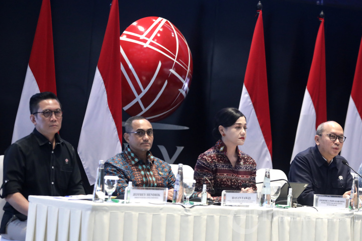 PASAR MODAL - Ceo Badan Pengelola Investasi Danantara Indonesia Rosan Roeslani (kanan) bersama Pejabat Sementara Ketua Dewan Komisioner OJK Frederica Widyasari Dewi (kedua kanan), Pejabat Sementara Kepala Eksekutif Pengawas Pasar Modal, Keuangan Derivatif, dan Bursa Karbon OJK Hasan Fawzi (kedua kiri) dan Direktur Bursa Efek Indonesia Jeffrey Hendrik (kiri) saat acara Dialog Bersama Pelaku Pasar Modal di Bursa Efek Indonesia, Jakarta, Minggu (1/2/2026). Dialog tersebut membahas 8 rencana aksi percepatan reformasi integritas pasar modal Indonesia. TRIBUNNEWS/IRWAN RISMAWAN