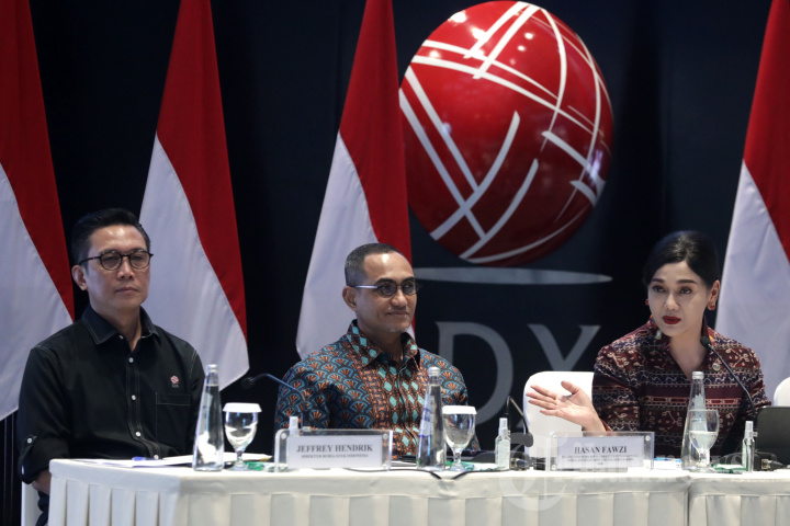 PASAR MODAL - Pejabat Sementara Ketua Dewan Komisioner OJK Frederica Widyasari Dewi (kanan) bersama Pejabat Sementara Kepala Eksekutif Pengawas Pasar Modal, Keuangan Derivatif, dan Bursa Karbon OJK Hasan Fawzi (tengah) dan Direktur Bursa Efek Indonesia Jeffrey Hendrik (kiri) saat acara Dialog Bersama Pelaku Pasar Modal di Bursa Efek Indonesia, Jakarta, Minggu (1/2/2026). Dialog tersebut membahas 8 rencana aksi percepatan reformasi integritas pasar modal Indonesia. TRIBUNNEWS/IRWAN RISMAWAN