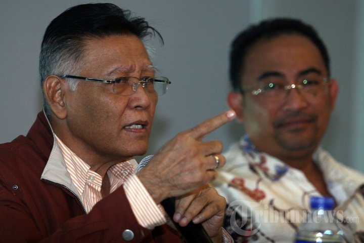 Pakar hukum pidana Universitas Padjadjaran, Romli Atmasasmita dan Advokat, Firman Wijaya (kiri-kanan) mengemukakan pandangan dalam acara diskusi yang digelar Forum Diskusi Wartawan Hukum Kuningan, di Jakarta, Sabtu (5/10/2013). Diskusi yang mengambil tema 'Catatan Kritis Kasus Suap Impor Daging Sapi: Benarkah Penyidikan KPK dan Putusan Pengadilan Tipikor Jakarta, Cacat Hukum?' tersebut menyoroti kasus korupsi yang melibatkan Partai Keadilan Sejahtera (PKS). (TRIBUNNEWS/DANY PERMANA)