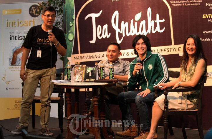 Majalah Intisari mengadakan 'Fun Talkshow Tea Insight', Kamis (31/10/2013) di Bentara Budaya Jakarta (BBJ). Hadir sebagai pembicara, Brand Ambassador Mytea Vino Bastian, Clinical Dietitian Food & Nutrition Expert Diesease Prevention & Sport Nutrition Emilia E Achmadi, Senior Editor Intisari Mayong S Laksono dan Edwin Panigoro. (TRIBUNNEWS.COM/FX ISMANTO)