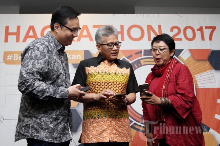 Vice President FWD Life Indonesia Rudi Kamdani (tengah) bersama Direktur Edukasi Ekonomi Kreatif BEKRAF Poppy Savitri (kanan) dan Director of Founder Institute Jakarta Andy Zain (kiri) berbincang mengenai FWD Hackathon microsite pada acara konferensi pers FWD Hackathon 2017 di Jakarta, Jumat (4/8/2017). FWD Life berkolaborasi dengan Founder Institute mengajak generasi muda untuk menciptakan inovasi terbaiknya dalam menciptakan ekosistem digital sekaligus membangun era asuransi jiwa digital sehingga mengubah cara pandang masyarakat tentang asuransi. TRIBUNNEWS/IRWAN RISMAWAN