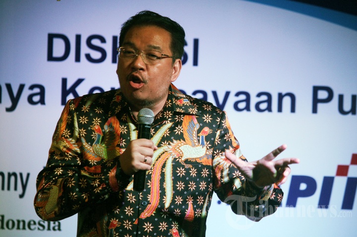 Pendiri Lingkaran Survei Indonesia (LSI) Denny JA saat memberikan kata sambutan disela-sela acara diskusi yang mengangkat tema Menurunnya Kepercayaan Publik di kawasan Menteng, Jakarta Pusat, Rabu (13/11/2019). Diskusi tersebut membahas efek pilpres 2019, menurunnya kepercayaan terhadap institusi negara dan lembaga sosial. Disela acara tersebut LSI Denny JA juga menjalin kerjasama dengan PT Lapi ITB tentang program bersama mini MBA & Short Course bidang Good Governance dan Political Marketing. Tribunnews/Jeprima