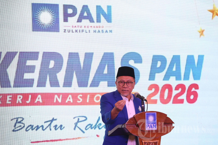 RAKERNAS PAN 2026 - Ketua Umum PAN, Zulkifli Hasan atau lebih akrab dipanggil Zulhas memberikan kata sambutan pada rapat kerja nasional (Rakernas) Partai Amanat Nasional (PAN) di kantor DPP PAN, Jakarta, Selasa (31/3/2026). Dalam Rakernas Zulhas menegaskan PAN akan mendukung penuh seluruh program strategis pemerintahan Prabowo, termasuk swasembada dan hilirisasi. Tribunnews/Jeprima