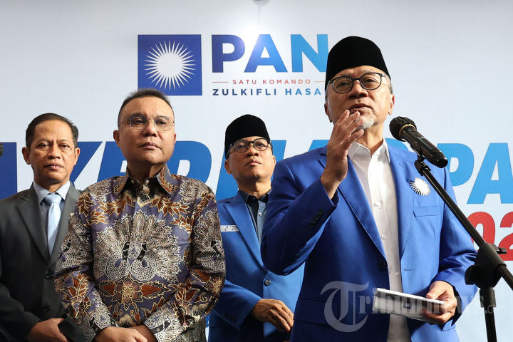 RAKERNAS PAN 2026 - Ketua Umum PAN, Zulkifli Hasan atau lebih dikenal Zulhas bersama Ketua Harian DPP Partai Gerindra sekaligus Wakil Ketua DPR RI, Sufmi Dasco Ahmad menjawab pertanyaan wartawan saat menghadiri rapat kerja nasional (Rakernas) Partai Amanat Nasional (PAN) di kantor DPP PAN, Jakarta, Selasa (31/3/2026). Dalam Rakernas Zulhas menegaskan PAN akan mendukung penuh seluruh program strategis pemerintahan Prabowo, termasuk swasembada dan hilirisasi. Tribunnews/Jeprima
