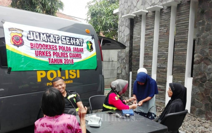 Kapolres Ciamis AKBP Bismo Teguh Prakoso , memimpin kegiatan Program Jumat Sehat yaitu pengobatan gratis, Jumat (31/8/2018) berlangsung di halaman Masjid Al Ikhlas di Jalan Jenderal Sudirman, Ciamis. TRIBUNNEWS.COM/IST