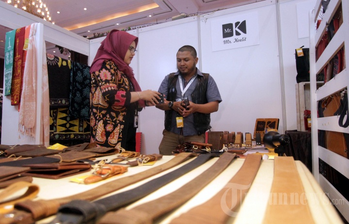 Direktur Group Manajemen Risiko Lembaga Penjamin Simpanan (LPS) Dewi Gayatri berbincang dengan pelaku UKM saat meninjau stan UKM Mitra Binaan LPS pada pameran Indocraft 2019 di Jakarta, Kamis (31/10/2019). Sebagai wujud pemberdayaan ekonomi masyarakat, LPS menggelar kegiatan sosial Program Mitra Binaan LPS yang dilaksanakan mulai Oktober hingga Desember 2019 dalam bentuk pemberian pelatihan hingga penyediaan akses pameran bagi para UKM binaan. TRIBUNNEWS/HO