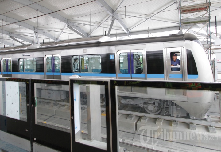 Kereta Mass Rapid Transit (MRT), saat diujicoba melitasi rel di Kawasan Depo MRT, Lebak Bulus, Jakarta Selatan Selasa (28/8/2018). PT MRT Jakarta telah menyelesaikan pembangunan penyelesaian Fase I dan II, serta menguji coba pengoprasian kereta MRT. Warta Kota/Angga Bhagya Nugraha