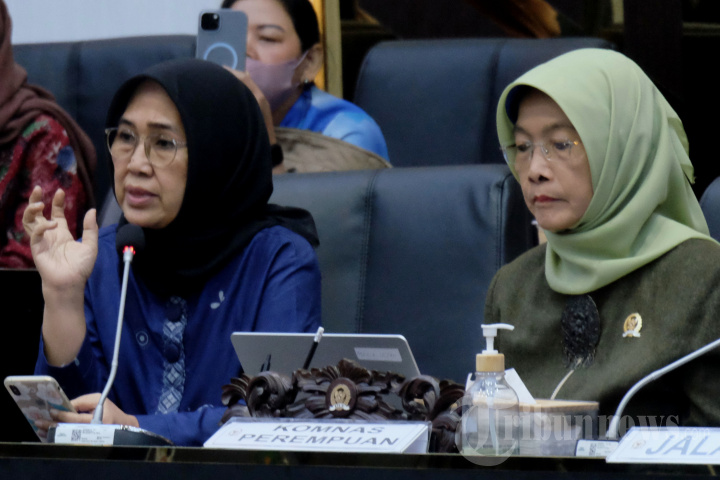 RDP - Direktur Institut Sarinah Eva Kusuma Sundari (kiri) bersama Ketua Komnas Perempuan Maria Ulfah Anshor (kanan) mengikuti Rapat Dengar Pendapat Umum (RDPU) bersama Badan Legislasi DPR di Kompleks Parlemen, Senayan, Jakarta, Kamis (5/3/2026). Rapat tersebut digelar untuk memberi masukan terkait Rancangan Undang-Undang tentang Perlindungan Pekerja Rumah Tangga (RUU PPRT). TRIBUNNEWS/IRWAN RISMAWAN