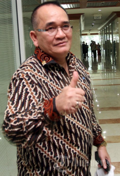Ruhut Poltak Sitompul sehabis wawancara dengan wartawan di depan ruang rapat Komisi III, Komplek DPR, Jalan Gatot Subroto, Senayan, Jakarta Pusat, Rabu (2/10/2013). Ruhut hari ini rencana hendak dilantik sebagai ketua komisi III mengantikan Gede Pasek Suardika yang minggu kemarin gagal di lantik yang karena banyaknya petolakan dari anggota komisi III. (Warta Kota/Henry Lopulalan)