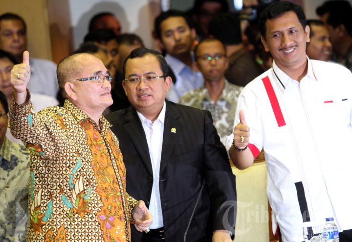 Calon Ketua Komisi III DPR Ruhut Sitompul seusai menyampaikan keputusannya untuk mundur sebagai calon Ketua Komisi III DPR di Kompleks Parlemen, Senayan, Jakarta Pusat, Senin (7/10/2013). Guna menghindari mekanisme voting sebagai bentuk penolakan sebagian rekan komisinya, Ruhut Sitompul memutuskan mengundurkan diri sebagai calon Ketua Komisi III DPR dan selanjutnya Fraksi Partai Demokrat DPR menunjuk Pieter C Zulkifli sebagai penggantinya. (Warta Kota/Henry Lopulalan)