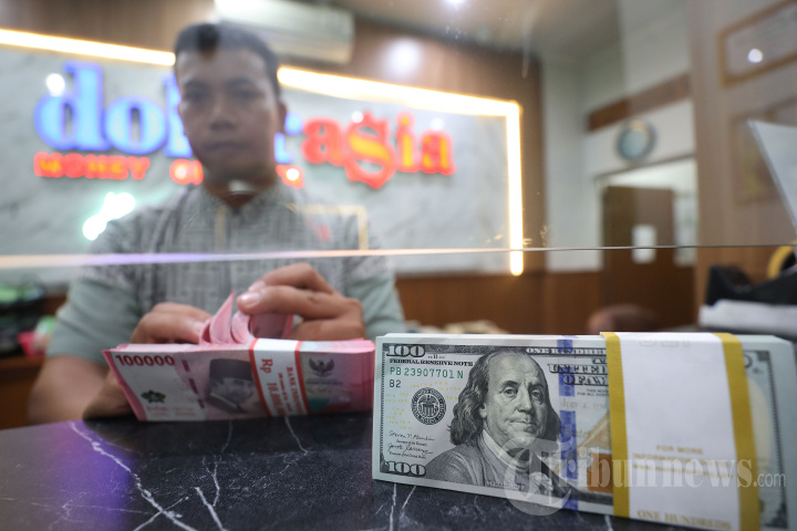 RUPIAH MENGUAT - Pegawai menunjukkan uang rupiah dan dolar AS di money changer DolarAsia, Jakarta Selatan, Selasa (27/1/2026). Nilai tukar (kurs) rupiah terhadap dolar Amerika Serikat (AS) ditutup di level Rp16.768 per USD. Mata uang Indonesia menguat 14 poin atau setara 0,08 persen dari posisi Rp16.782 per USD pada penutupan perdagangan hari sebelumnya. Tribunnews/Jeprima