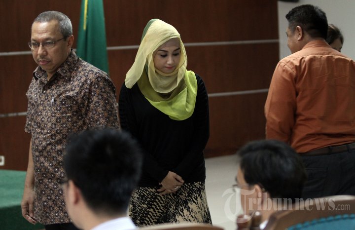 Istri Ahmad Fathanah Sefti Sanustika (tengah) bersama bendahara Partai Keadilan Sejahtera Mahmfuz Abdurahman (kiri) usai disumpah saat bersaksi dalam sidang terdakwa Luthfi Hasan Ishaaq di Pengadilan Tindak Pidana Korupsi Jakarta, Senin (28/10/2013). Luthfi diajukan ke meja hijau karena diduga terkait dalam kasus suap kuota impor daging sapi di Kementrian Pertanian. (TRIBUNNEWS/DANY PERMANA)