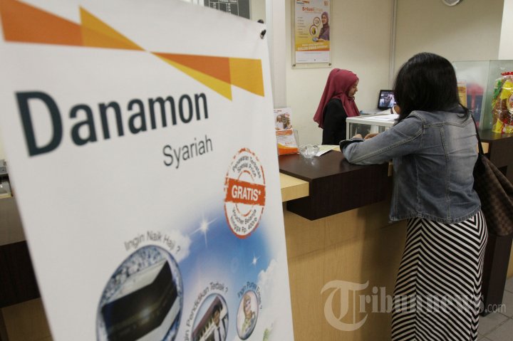 Petugas melayani nasabah di banking hall salah satu kantor cabang Bank Danamon Syariah, di Jakarta Selatan, Senin (21/10/2013). Danamon Syariah menargetkan bisa melakukan spin off pada 2016 mendatang. Sementara itu, hingga September, Bank Danamon Syariah membukukan aset senilai Rp 2,5 triliun-Rp 2,7 triliun. TRIBUNNEWS/HERUDIN