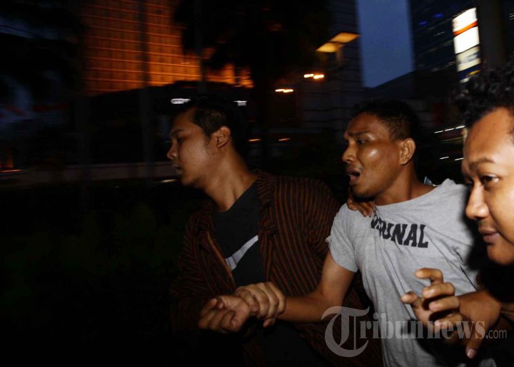 Petugas mengamankan sejumlah pria yang diduga sebagai pelaku kerusuhan yang terjadi siang tadi di Gedung Mahkamah Konstitusi di Wisma Nusantara, Jakarta Pusat, Kamis, (14/11/2013). Sidang sengketa Pilgub Maluku 2013 di Mahkamah Konstitusi (MK) rusuh setelah salah satu pendukung calon gubernur mengamuk saat Hamdan Zoelva membacakan putusan pertama dari empat keputusan yang menolak gugatan tersebut pemohon. (Warta Kota/Angga Bhagya Nugraha)
