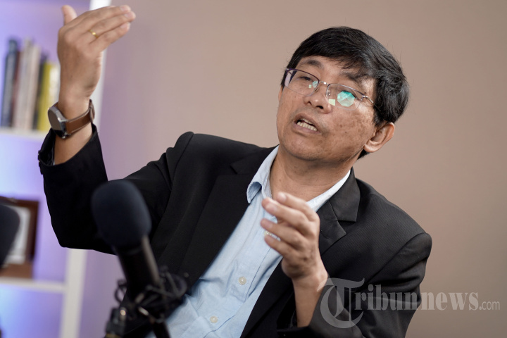 WAWANCARA KHUSUS - Wakil Direktur Pemberitaan Tribun Network Domu Ambarita saat mewawancarai secara khusus Pengamat Migas dan Pemerhati Moshe Rizal di Studio Tribun Network, Jakarta, Kamis (19/2/2026). Dalam wawancaranya, Moshe menjelaskan seputar persoalan pengelolaan sumber daya minyak dan gas bumi yang tengah dihadapi Indonesia, bahkan secara global. TRIBUNNEWS/LUTFI AKMAL