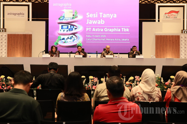 ASTRAGRAPHIA GELAR RUPST - (kiri-kanan) Direktur PT Astra Graphia Tbk Trivena Nalsalita bersama Presiden Direktur PT Astra Graphia Tbk Hendrix Pramana, Direktur PT Astra Graphia Tbk King Iriawan dan Direktur PT Astra Graphia Tbk Widi Triwibowo menggelar Rapat Umum Pemegang Saham Tahunan (RUPST) 2026 di Jakarta, Rabu (17/4/2026). Sepanjang tahun 2025, Astragraphia berhasil membukukan laba bersih sebesar Rp271 miliar atau tumbuh 32% dibandingkan tahun 2024, dengan pendapatan bersih sebesar Rp2.991 miliar. Kinerja positif ini didorong oleh pertumbuhan pendapatan di solusi teknologi informasi, penerapan operational excellence sebagai fondasi utama, yang didukung pengelolaan arus kas yang sehat, percepatan digitalisasi proses bisnis, serta inovasi berkelanjutan. Tribunnews/Jeprima