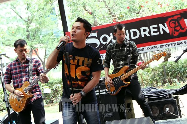 Grup musik Andra & The Backbone yang digawangi Dedi, Andra dan Stevi Item saat ditemui pada acara konferensi pers Soundrenaline 2012 yang bertajuk 'Rhythm Revival' di Beer Garden, Kawasan SCBD, Jakarta Selatan, Senin (29/10/2012). (Tribun Jakarta/Jeprima)