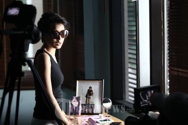 Personil 7 icons Angela Tee atau biasa dipanggil Angel saat menjadi model video klip sekaligus menyutradarai video klip dari Duo Vokal ARKA di Jalan Sapi Perah No 9a, Pondok Rangon, Jakarta Timur, Jumat (21/12/2012). (Tribun Jakarta/Jeprima)