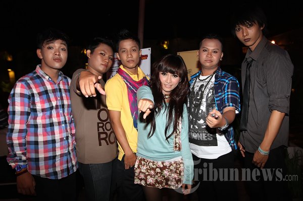 Grup band yang bergenre pop rock, Bee Violet, yang digawangi Anis (vokal), Bayhaqy (gitar), Hamid (gitar), Awan (bass), Deny (drum), dan Arya (keyboard) saat melakukan konferensi pers tentang peluncuran album mereka yang bertajuk 'Sahabat' di Rolling Stones Cafe, Ampera Raya, Jakarta Selatan, Rabu (5/12/2012). (Tribun Jakarta/Jeprima)