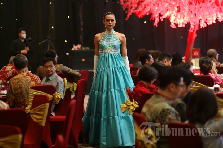 Model menampilkan busana ramcangan desainer Sebastian Gunawan disela-sela acara DBS Spring Festival 2026 di Jakarta, Jumat (27/2/2026). Mengangkat tema 'Wealth, Crafted with Purpose', DBS Spring Festival merupakan signature event Bank DBS Indonesia yang menjadi wadah untuk menghadirkan insight mendalam bagi nasabah private dan prioritas. TRIBUNNEWS/IRWAN RISMAWAN
