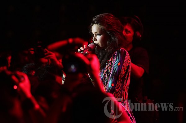 Aksi penyanyi Dewi Sandra Killick atau Dewi Sandra saat tampil pada ajang musik Java Soulnation Festival 2012 pada hari ke-2 di Istora Senayan, Jakarta Selatan, Sabtu (29/9/2012) malam. (Tribun Jakarta/Jeprima)