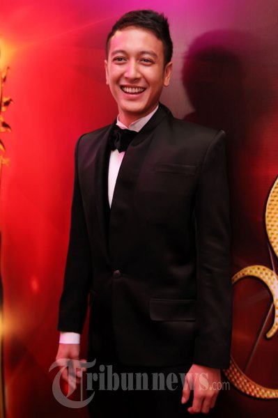 Pemain film, Dimas Anggara meraih penghargaan sebagai Aktor Utama Paling Ngetop pada SCTV Awards 2012 di Teater Tanah Airku, Taman Mini Indonesia Indah, Jakarta Timur, Jumat (30/11/2012) malam. (Tribun Jakarta/Jeprima)