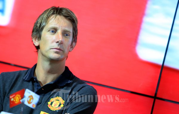 Kiper Legendaris Manchester United Edwin van Der Sar saat menghadiri pengumuman pemenang red match kartu danamon manchester united di Resto and Bar Prive Fx Mall, Jakarta Selatan, Senin (18/06/2012). Program red Match kartu danamon memberikan kesempatan kepada 48 nasabah kartu kredit dan kartu debit untuk dapat menyaksikan langsung pertandingan manchester united di old trafford setiap tahunnya. (Tribun Jakarta/Jeprima)