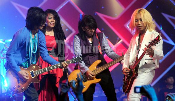 Aksi Tatri Kotak duet dengan Iman J Rocks bawakan lagu Rock Never Dies dalam Mega Konser bertema Energi Dari Langis disiarkan langsung dari Srudio 4 RCTI, Kebon Jeruk, Jakarta .Rabu (28/9/2011) KOTAK bertepatan dengan launching album berbarunya Energi Repackage. (TRIBUNNEWS.COM/FX ISMANTO)