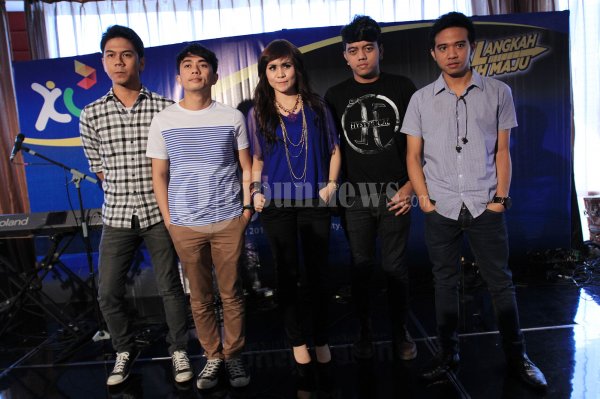 Grup band Geisha saat menjadi bintang tamu pada acara peluncuran konten musik yang bernama MUSIKKAMU di FX Cone, Jakarta Selatan, Rabu (16/05/2012). Geisha yang disindir tentang Ariel mengaku sudah lama tidak ketemu dengan Ariel. (Tribun Jakarta/Jeprima)