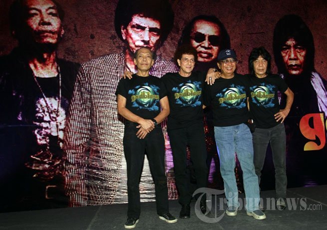Penampilan para personel Godbless dalam berbagai penampilan pada acara syukuran 40 tahun Godbless di industri musik Indonesia, yang berlangsung di Hotel Twin Plaza, Jakarta Barat, Selasa (7/5/2013). Selama 40 tahun berkarya, mereka sudah memiliki 6 album dan 20 kali gonta ganti personel, personel terakhir beranggotakan, Achmad Albar (vokal), Donny Fattah (bassis), Abadi Soesman (Keyboardis), dan Ian Antono, (Gitar). Resep bertahan hingga usia 40 tahun, menurut Iyek sebutan akrab Achmad Albar, karena masing-masing personel bisa saling menghormati, menjaga perasaan orang lain, saling mengisi dan tidak merasa paling jago diantara personel. Godbless didirikan pada 5 Mei 1973. Menandai usianya yang telah 40 tahun, Godbless akan menggelar konser pada 7 September 2013 mendatang di Meis, Ancol, Jakarta Utara. (WARTA KOTA/Nur Ichsan)