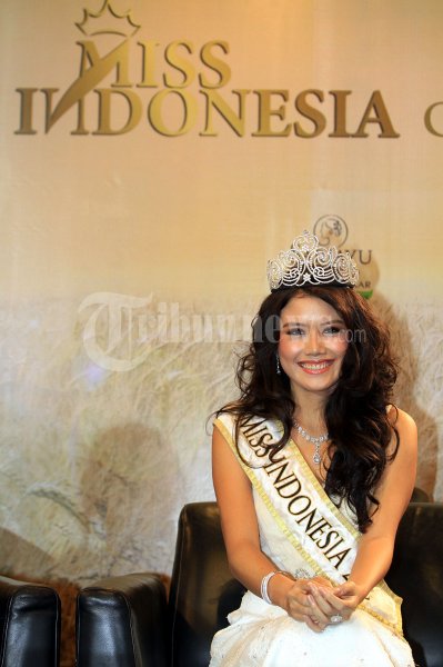 Miss Indonesia 2012 Ines Putri Tjiptadi Chandra yang sering disapa Ines saat melakukan Jumpa pers persiapannya menuju Miss World 2012 di Belleza Permata Hijau, Jakarta Selatan, Senin (10/07/2012). Ines akan melakukan aksi lelang gelang untuk penggalangan dana miss world 2012 bagi lembaga internasional yang perduli terhadap anak anak. (Tribun Jakarta/Jeprima)