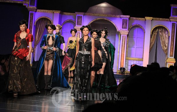 Busana-busana karya Raden Sirait pada event Jakarta Fashion and Food Festival yang bertema INNOFASHION di ballroom Hotel Harris, Kelapa Gading, Jakarta Utara, Senin malam (14/05/2012). Pada pagelaran Tunggal Raden Sirait yang bertajuk kebaya for the world merupakan lanjutan dari tema tahun lalu journey of love, tema cinta akan selalu dipakai pada pagelaran Raden Sirait. (Tribun Jakarta/Jeprima)
