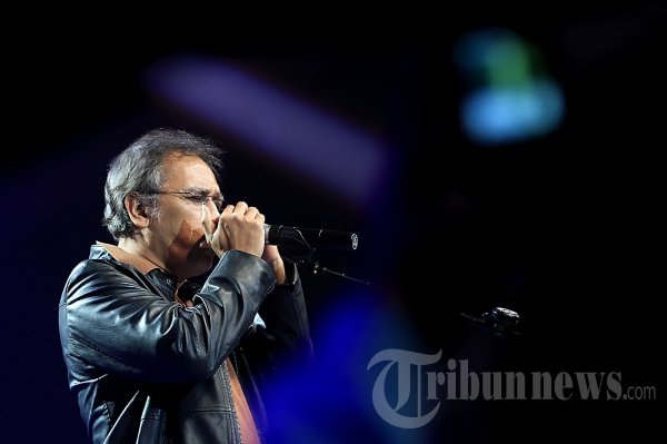 Musisi Virgiawan Listanto atau lebih dikenal Iwan Fals saat mengisi acara konser yang bertajuk 'konser terdasyat' di Studio 8 RCTI, Kebon Jeruk, Jakarta Barat, Sabtu (1/9/2012) malam. Iwan Fals menghibur para penggemarnya pada konser malam itu dengan membawakan 2 lagu. (Tribun Jakarta/Jeprima)