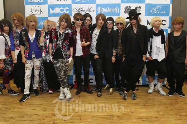 Para personil Band visual kei asal Jepang, Alice Nine MUCC dan UNITE saat berfoto bersama seusai konferensi pers JRock Evolution di Gandaria City, Jakarta Selatan, Sabtu (6/10/2012). (Tribun Jakarta/Jeprima)