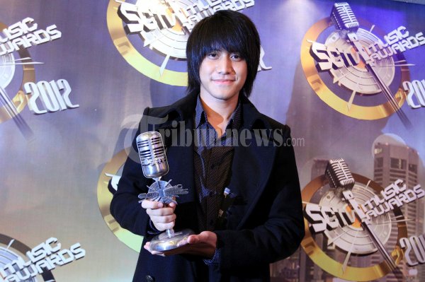 Keyboardis Band Vierra Kevin Aprilio menerima penghargaan SCTV MUSIC AWARDS 2012 kategori pemain keyboard favorit yang diselenggarakan di Jitec Mangga Dua Square, Jakarta Utara, Jumat malam (27/04/2012). (Tribun Jakarta/Jeprima)
