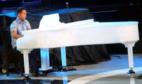 Adi MS berkolaborasi dengan Edwin Gutawa dalam Gladi Bersih Simfoni Semesta Raya KOMPAS TV di Plenary Hall JCC, Jakarta. Jumat (9/9/2011) (TRIBUNNEWS.COM/FX ISMANTO)