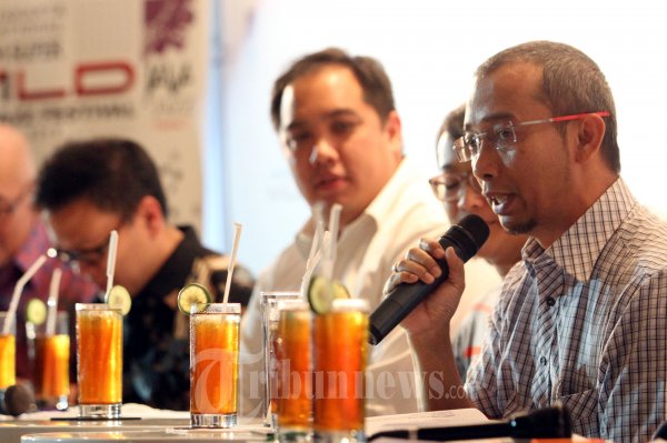 Sejumlah narasumber hadir saat jumpa pers terkait Jakarta International Djarum Super Mild Java Jazz Festival 2013 jelang Festival musik Java Jazz Festival 2013 di Hotel Sultan, Jakarta Selatan, Rabu (30/1/2013). Java Jazz Festival 2013 rencananya akan berlangsung pada 1-3 Maret 2013 di Kemayoran. (Tribun Jakarta/Jeprima)
