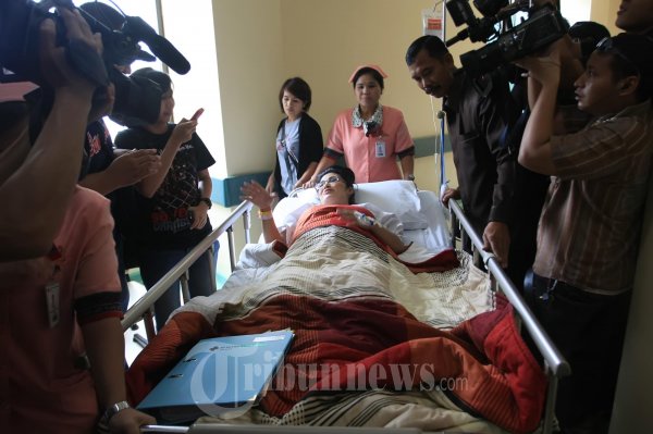 Krisdayanti setelah keluar dari ruangan cesar setelah melahirkan melalui proses cesar di RS Mitra, Kemayoran, Jakarta Utara, Rabu (12/12/2012). (Tribun Jakarta/Jeprima)