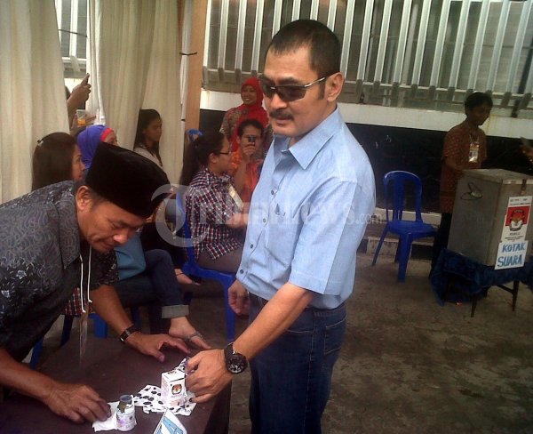 Mayangsari Dan Bambang Trihatmodjo Nyoblos Di TPS 030 Simprug Jakarta Selatan. Rabu (11/7/2012) (TRIBUN JAKARTA/Ferro Maulana)