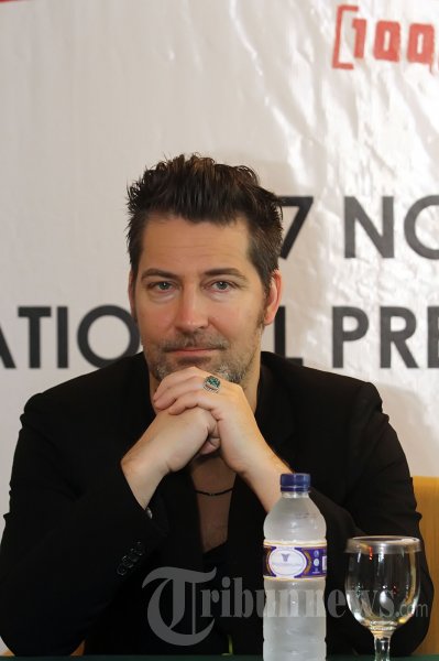 Personil grup musik pop Denmark Michael Learns to Rock atau sering disingkat MLTR, Mikkel Lentz saat melakukan konferensi pers rencana konser mereka di 3 Kota Indonesia di Menara Peninsula Hotel, S. Parman, Jakarta Barat, Selasa (27/11/2012). (Tribun Jakarta/Jeprima)