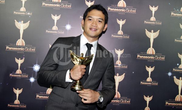 Pemain Sinetron Rezky Aditya saat memenangkan panasonic award 2012 di ballroom jakarta teater, jakarta pusat, Selasa (27/03/2012). pemeran Yusra dan Yumma itu mengalahkan pesaingnya Dude herlino,Teuku Wisnu,Atalarik Syah,Ari Wibowo pada ajang bergengsi ini. (Tribun Jakarta / Jeprima).