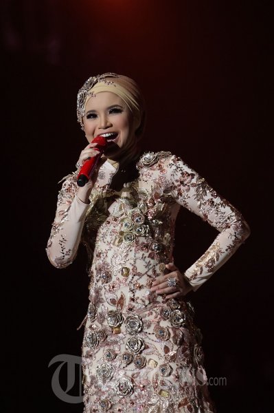 Aksi panggung penyanyi Sri Rossa Roslaina Handiyani atau lebih dikenal Rossa saat saat tampil pada konser ekspresi karya gemilang di MEIS Ancol, Jakarta Utara, Senin (10/12/2012) malam. (Tribun Jakarta/Jeprima)
