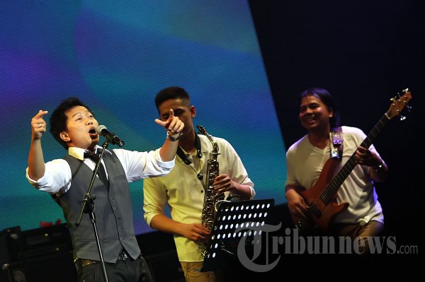 Aksi panggung penyanyi Sandhy Sondoro saat tampil pada Java Soulnation Festival 2012 di Istora Senayan, Jakarta Selatan, Jumat (28/9/2012) malam. Sandhy Sondoro tampil menghibur para penggemarnya pada hari pertama Java Soulnation. (Tribun Jakarta/Jeprima)