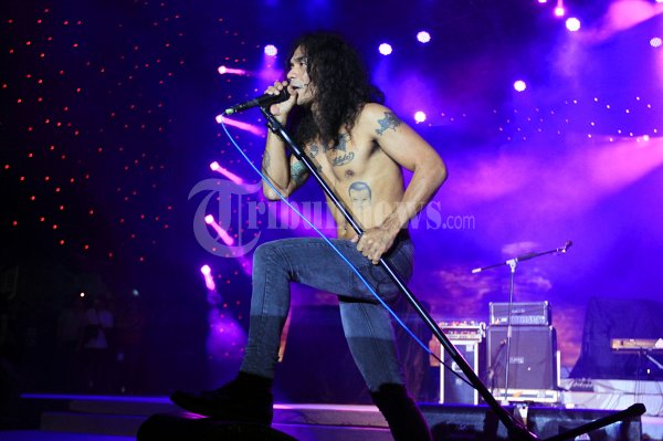 Grup band Slank saat tampil pada rangkaian acara musik Pekan Raya Jakarta fair yang merupakan event tahunan yang di adakan dalam rangka hut jakarta yang ke 485 tahun di pekan Raya Jakarta (PRJ), Jakarta Pusat, Kamis malam (28/06/2012). Slank membawakan lagu terlalu manis pada konsernya dan diikuti para Slankers yang datang dari berbagai daerah di Indonesia. (Tribun Jakarta/Jeprima)
