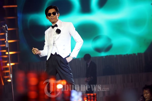 Aksi panggung grup musik asal Bandung The Changcuters saat tampil pada acara ulang tahun Global Tv yang bertajuk 'Pesta Lampion' di Studio 8 RCTI, Kebon Jeruk, Jakarta Barat, Senin (8/10/2012) malam. (Tribun Jakarta/Jeprima)