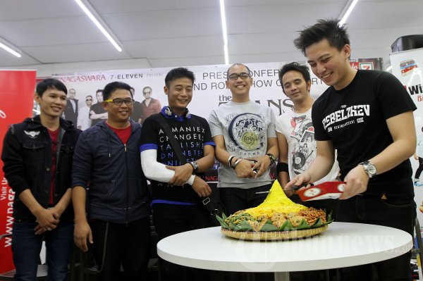 Grup musik The Titans saat melakukan konferensi pers mengenai peluncuran albumnya yang bertajuk 'Kirana' di gerai ritel 7-Eleven Saharjo, Tebet, Jakarta Selatan, Jumat (5/10/2012). (Tribun Jakarta/Jeprima)