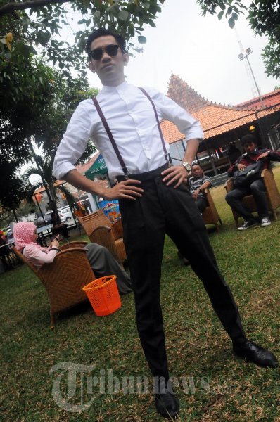 TRIA VOKALIS THE CHANGCUTERS - Mohammad Tria Ramadani alias Tria vokalis The Changcuters, di acara peluncuran singel religi pertama yang diberi judul 'Hap Tangkap', Senin (6/8/2012) di Rumah Saya, Pasar Minggu, Jakarta. (TRIBUNNEWS.COM/FX ISMANTO)