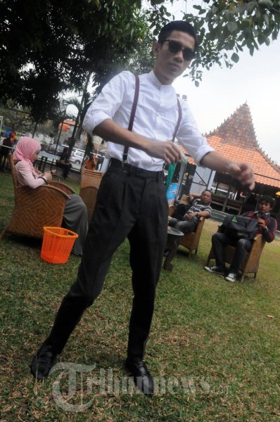 TRIA VOKALIS THE CHANGCUTERS - Mohammad Tria Ramadani alias Tria vokalis The Changcuters, di acara peluncuran singel religi pertama yang diberi judul 'Hap Tangkap', Senin (6/8/2012) di Rumah Saya, Pasar Minggu, Jakarta. (TRIBUNNEWS.COM/FX ISMANTO)