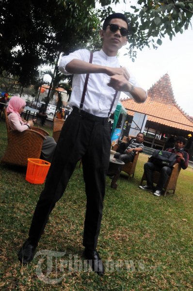 TRIA VOKALIS THE CHANGCUTERS - Mohammad Tria Ramadani alias Tria vokalis The Changcuters, di acara peluncuran singel religi pertama yang diberi judul 'Hap Tangkap', Senin (6/8/2012) di Rumah Saya, Pasar Minggu, Jakarta. (TRIBUNNEWS.COM/FX ISMANTO)